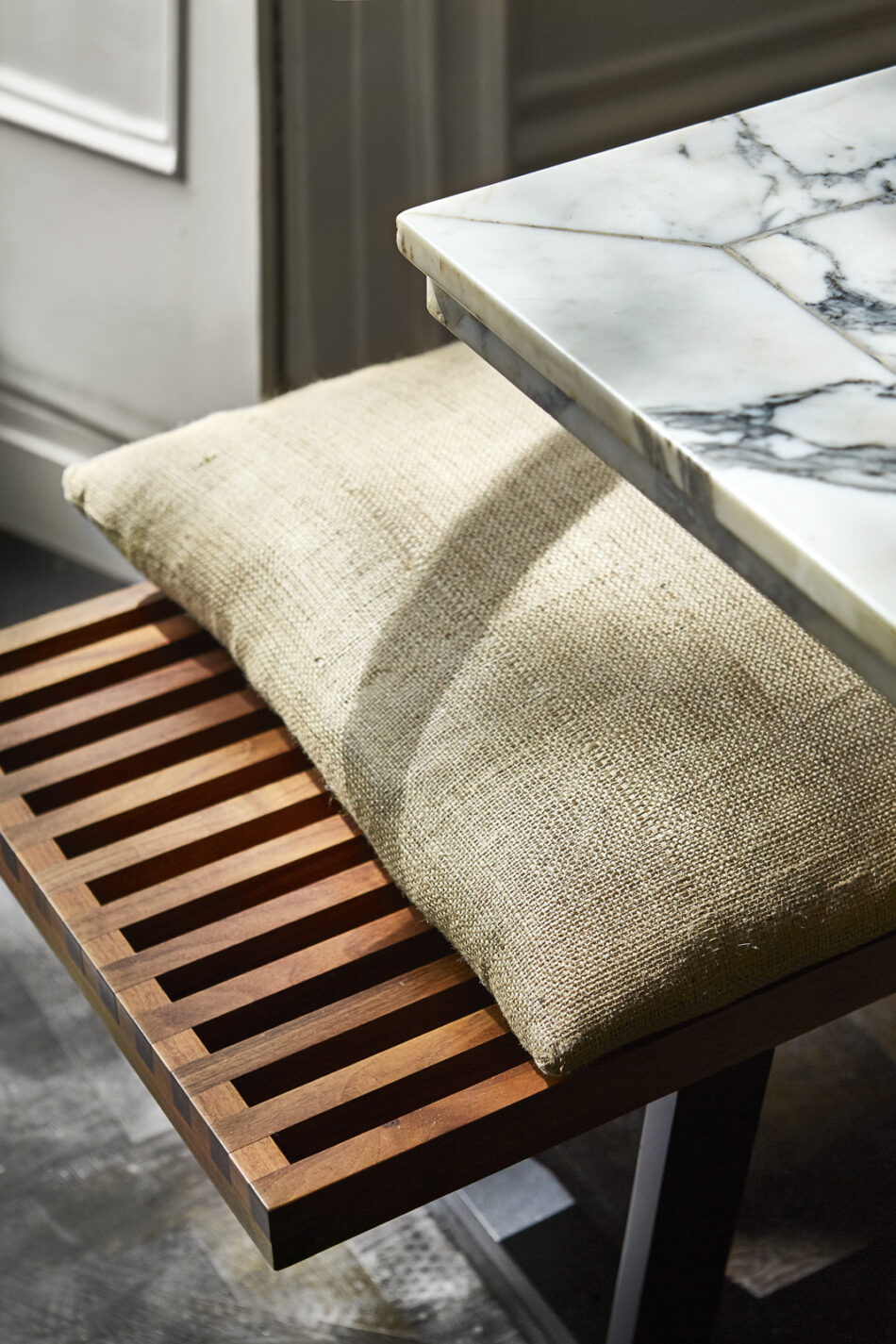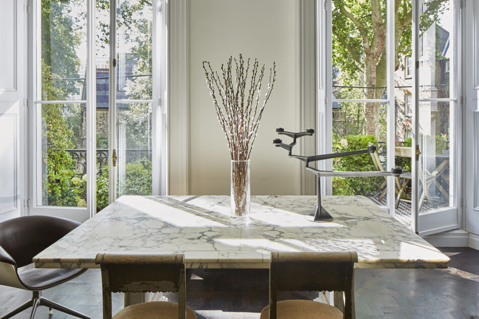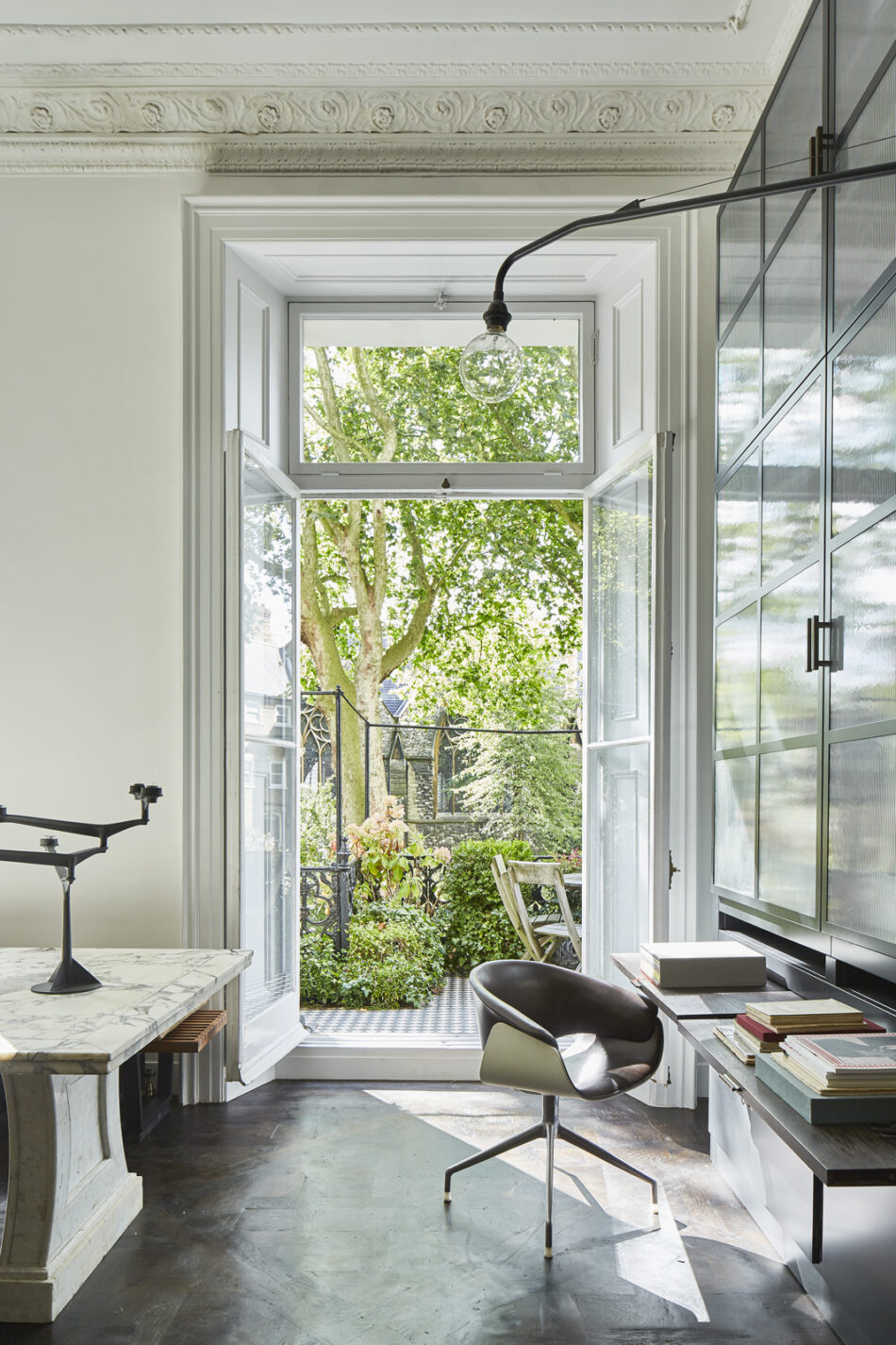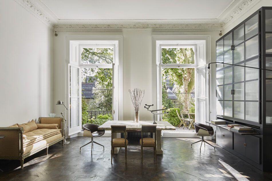 A voluminous former ballroom is the setting of this exquisitely designed apartment by Stone + Partners. It is situated on the highly sought-after Courtfield Gardens in South Kensington, with a private balcony terrace overlooking a verdant churchyard square, to which it has residents’ access. The apartment measures over 1,100 sq ft and is set on the first floor of a stucco-fronted period building.